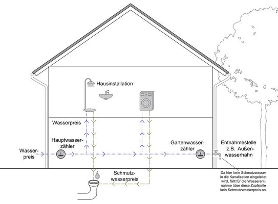 Wird eine Teilmenge des gemessenen Trinkwassers nachweislich im Garten verbraucht und nicht dem Abwassernetz zugeführt, dann kann für diese Menge das Entgelt hinsichtlich der Schmutzwasserbehandlung eingespart werden. Den Nachweis hierfür liefert ein zusätzlicher Wasserzähler.